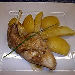 1 lapin,4 pommes de terre,3 pommes fruit,sel, poivre,2 oignon nouveaux,fond de veau