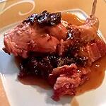 farinee les morceaux de lapins les faire dorer dans la casserole puis mettre le lard fumee coupee a environ 2 cm ,mettre les pruneaux ,le sucre, le vignaigre bien melanger puis recouvrir d eau au 3/4